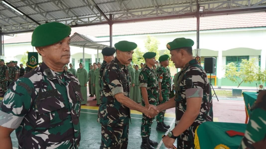 Kotawaringin Timur – Sebanyak 29 personel dari Kodim 1015/Sampit mengikuti Upacara Korps Raport kenaikan pangkat bagi perwira, bintara, dan tamtama yang berlangsung pada periode 1 April 2026. Upacara ini juga mencakup penyerahan jabatan Kepala Seksi Operasi (Kasiops) dari Kasrem 102/Pjg kepada Letkol Inf Abdul Jamal Husin, M.Han., yang diselenggarakan di Aula Outdoor Korem 102/Panju Panjang pada Kamis, (02/04/2026).