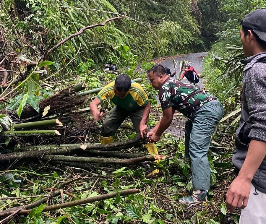 Bangli, 9 Januari 2026 – Akses jalan yang menghubungkan Banjar Wanagiri dan Banjar Wanasari di Kecamatan Kintamani sempat terhalang oleh longsor yang disebabkan oleh hujan lebat. Material longsoran berupa pepohonan menutupi jalan, sehingga kendaraan tidak dapat melewati jalur vital ini. Menanggapi situasi darurat tersebut, Babinsa Desa Kintamani berkolaborasi dengan warga setempat melakukan pembersihan material longsoran secara cepat dan efektif.