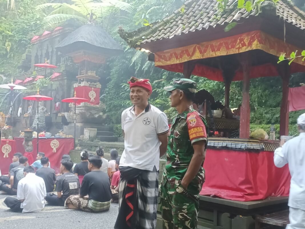 Bangli – Dalam upaya menciptakan rasa aman dan nyaman bagi masyarakat serta pengunjung, Babinsa Desa Abuan yang tergabung dalam Koramil 1626-02/Susut Kodim 1626/Bangli, Sertu I Dewa Gede Mertawan, bersama Bendesa Adat Sala melakukan pemantauan atas perayaan Hari Raya Banyupinaruh di lokasi wisata spiritual Pura Taman Pecampuhan Sala, tepatnya di Banjar Dinas Sala, Desa Abuan, Kecamatan Susut, Kabupaten Bangli.