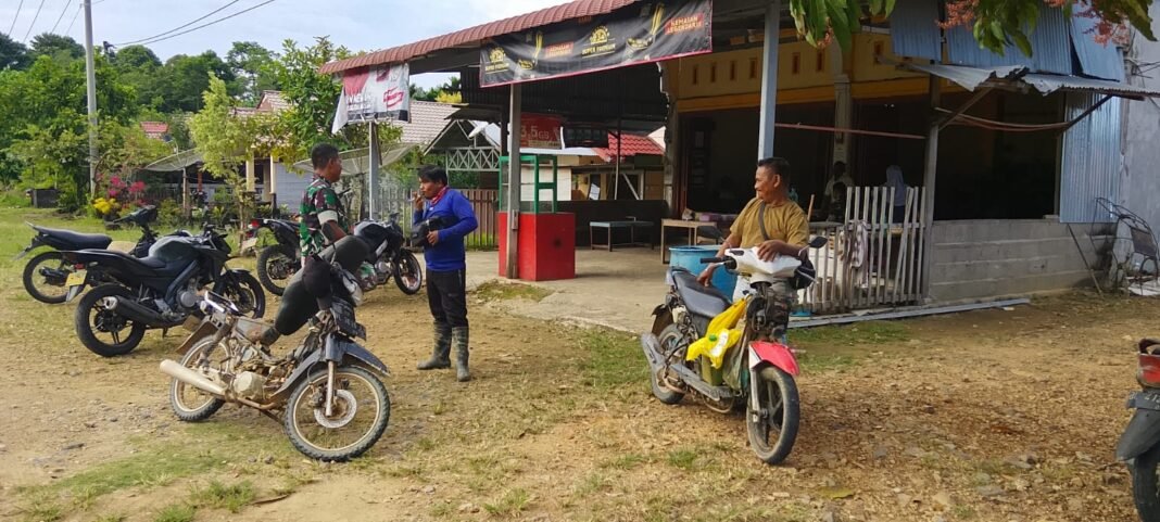 ACEH JAYA – Babinsa Koramil 03/Setia Bakti Kodim 0114/Aceh Jaya, Kopda Gito, melaksanakan komunikasi sosial bersama salah satu warga binaan, Habibi (35), yang berprofesi sebagai pemanen kelapa sawit di Desa Lhokglumpang, Kecamatan Setia Bakti, Kabupaten Aceh Jaya, Rabu (11/02/2026).