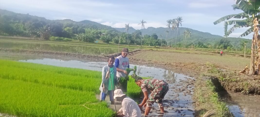 MANGGARAI TIMUR – Dalam upaya meningkatkan ketahanan pangan nasional, TNI Angkatan Darat menunjukkan komitmennya dengan terjun langsung mendukung sektor pertanian di tingkat desa. Salah satu contohnya adalah kehadiran Babinsa Koramil 1612-04/Elar, Kopda Tomi Toto Demarsandi, yang berpartisipasi aktif bersama kelompok petani di Desa Kembang Mekar, Kecamatan Sambi Rampas, pada Selasa (3/2/2026).