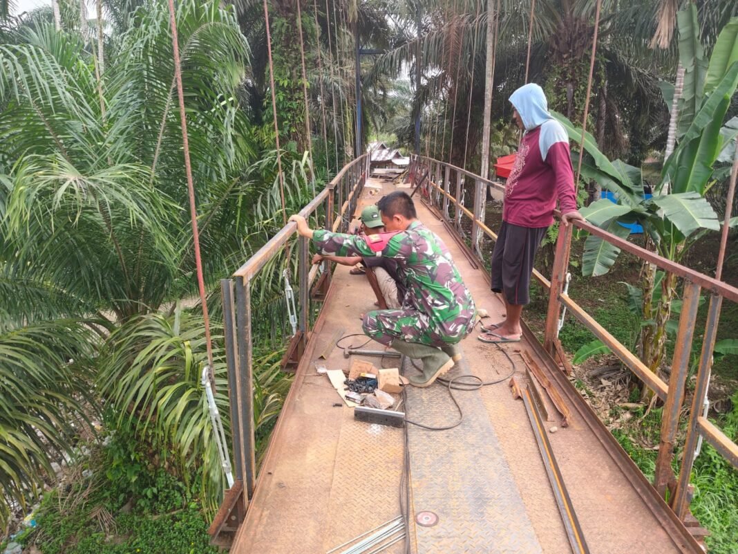 Seluma – Sertu Askan Efendi, anggota Babinsa dari Koramil 425-04/Semidang Alas Maras, Kodim 0425/Seluma, berpartisipasi dalam kegiatan pengelasan besi di Jembatan Garuda, yang berada di Desa Bandung Agung, Kecamatan Semidang Alas, Kabupaten Seluma, pada Rabu (29/04/2026). Kegiatan ini bertujuan mendukung pembangunan infrastruktur sekaligus meningkatkan keselamatan.