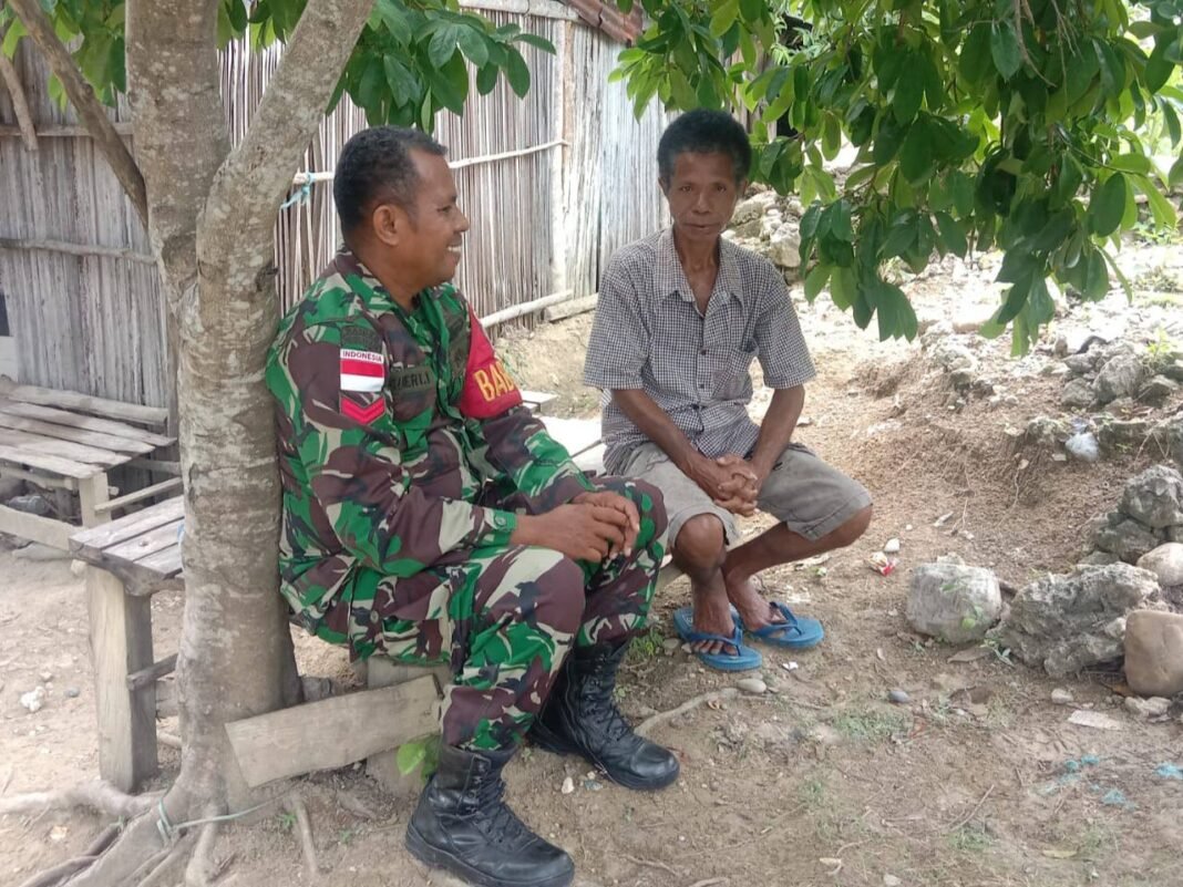 KODIM 1605/BELU – Dalam upaya memperkuat hubungan dengan masyarakat, Babinsa Barene dari Koramil 1605-04/Betun, Kopka Albertus Taek, melaksanakan kegiatan komunikasi sosial (Komsos) di Dusun Halioan, Desa Barene, Kecamatan Malaka Tengah, Kabupaten Malaka pada Senin, 29 Desember 2025. Kegiatan ini merupakan bagian dari pemantauan rutin wilayah binaan untuk memastikan kedekatan dan keharmonisan antara aparat dan warga.