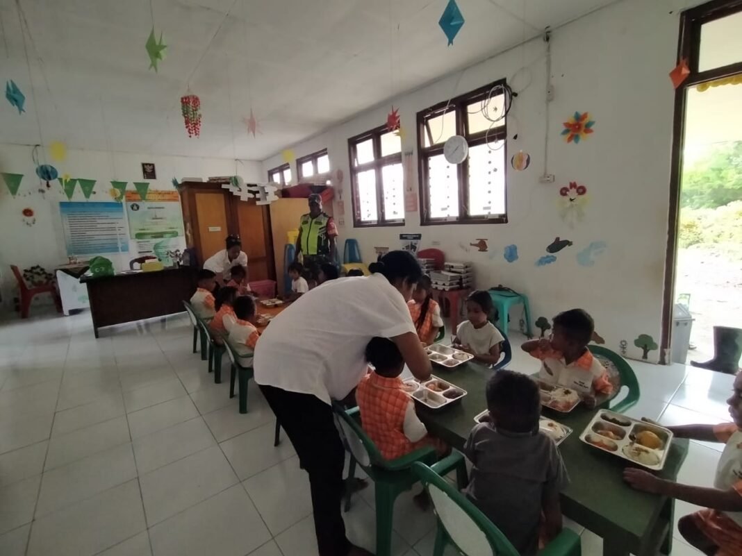 SUMBA BARAT – Untuk memastikan bahwa program pemerintah dilaksanakan dengan baik dan tepat sasaran, Babinsa dari Koramil 01/Loli Kodim 1613/Sumba Barat, Sertu Silas Kikhau, melakukan pemantauan terhadap penyaluran Makan Bergizi Gratis (MBG) di sekolah yang berlokasi di Desa Ubu Raya, Kecamatan Loli, Kabupaten Sumba Barat, pada Rabu (11/02/2026).