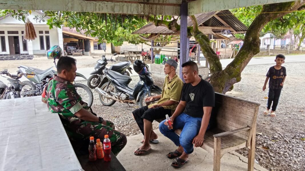 ACEH JAYA — Babinsa Posramil Pasie Raya Kodim 0114/Aceh Jaya, Sertu Arapik, melaksanakan komunikasi sosial bersama Keuchik Desa Pasi Teubbe, Bapak Fery (43), di wilayah Kecamatan Pasie Raya, Kabupaten Aceh Jaya, Minggu (08/02/2026).