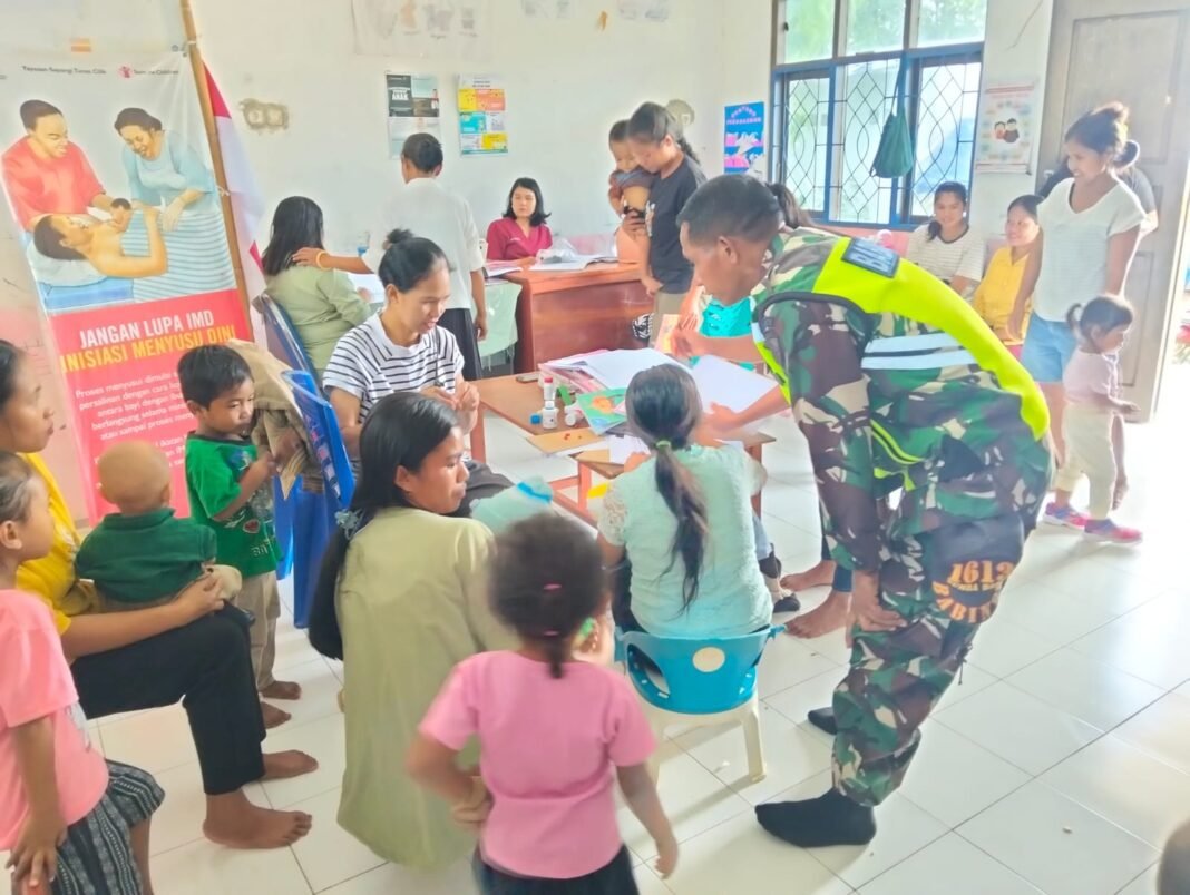 SUMBA BARAT – Dalam upaya meningkatkan kesehatan masyarakat di wilayah binaannya, Sertu Samuel Lede Kalli, yang bertugas sebagai Babinsa di Koramil 01/Loli, Kodim 1613/Sumba Barat, menjalankan kegiatan pendampingan Posyandu di Desa Puu Mawo, Kecamatan Kota Waikabubak, Kabupaten Sumba Barat pada Rabu, 11 Februari 2026.
