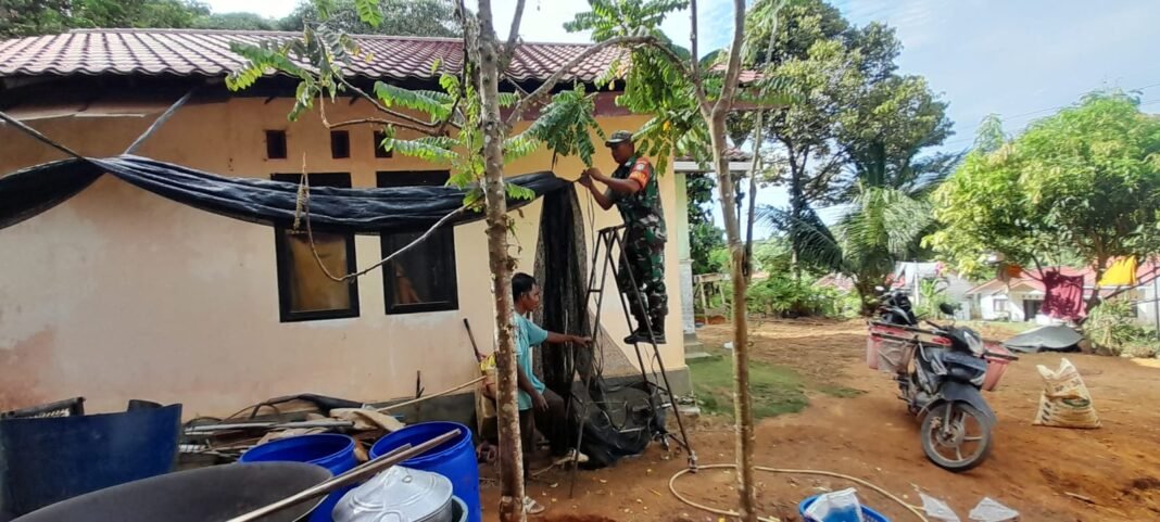 Di rumah Bapak Adi, Kopda Gito bersama warga sekitar bergotong royong memasang atap pelindung panas. Atap tersebut dipasang sebagai tambahan untuk mengurangi teriknya matahari yang masuk ke dalam rumah, sehingga penghuni rumah dapat merasakan kenyamanan yang lebih baik dalam beraktivitas sehari-hari.