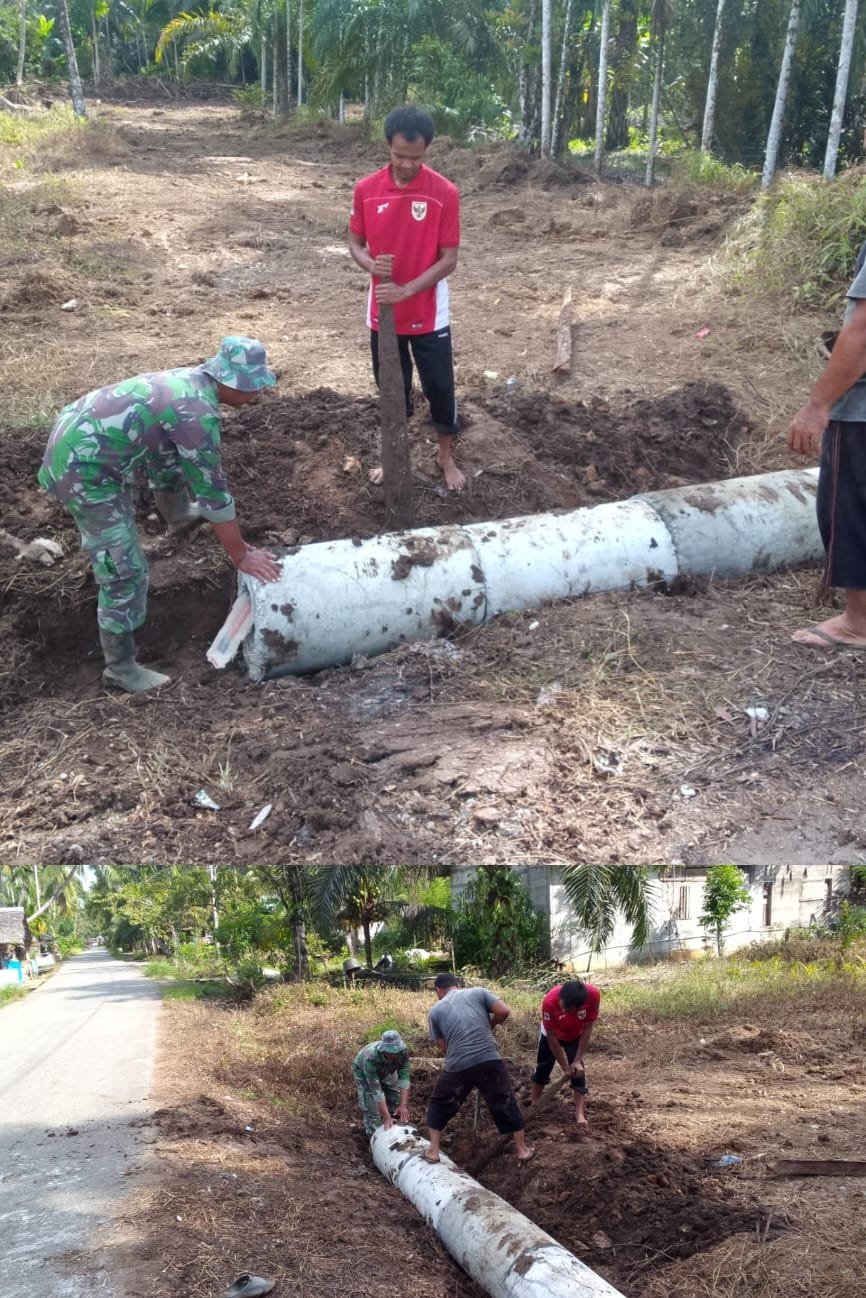ACEH BARAT – Wujud nyata kepedulian terhadap kesejahteraan petani dan kemajuan desa binaan, Babinsa Koramil 0105-10/Woyla Barat Kodim 0105/Aceh Barat, Sertu Sutrisno, bersama Kelompok Tani Udep Sare melaksanakan kegiatan gotong royong pemasangan gorong-gorong di jalan menuju area persawahan Desa Monpasong, Kecamatan Woyla Barat, Kabupaten Aceh Barat, Rabu (11/2/2026).