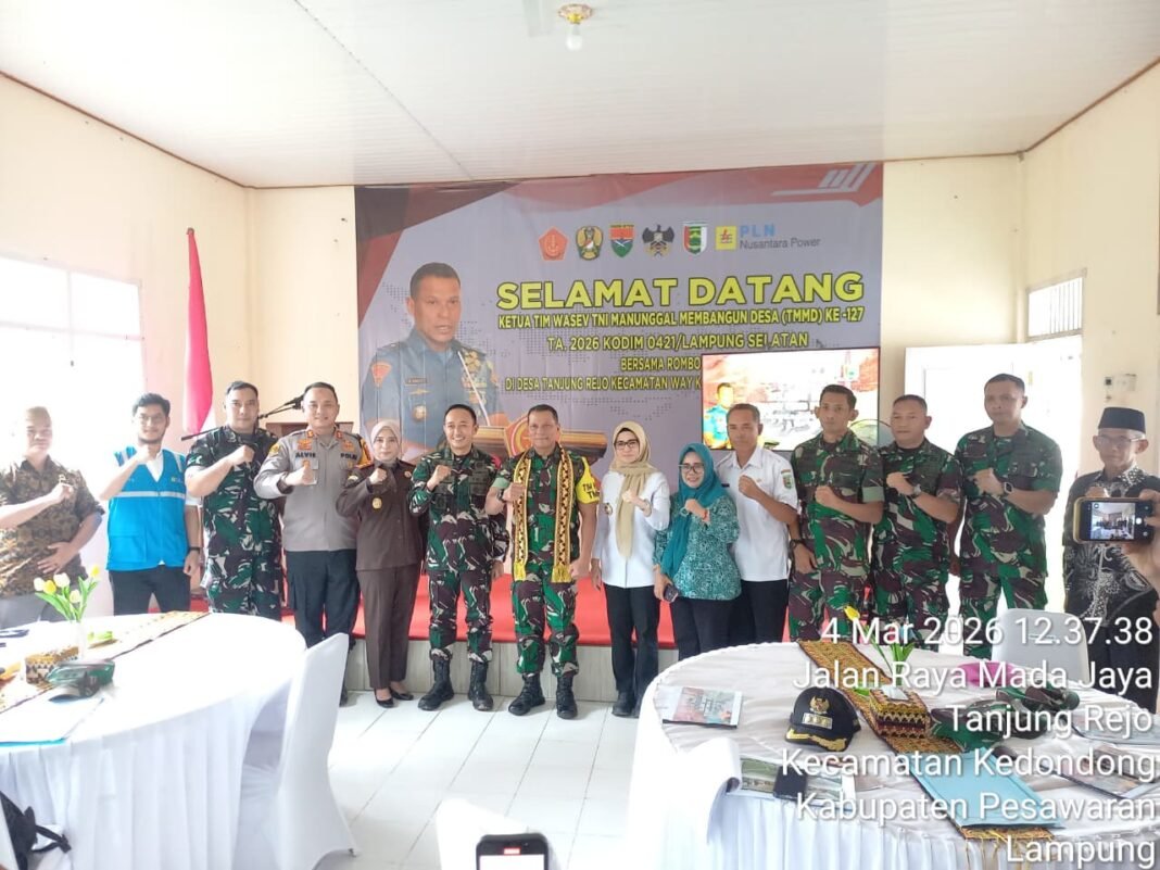 Pesawaran – Tim Pengawas dan Evaluasi (Wasev) yang dipimpin oleh Brigjen TNI (Mar) Bambang Hadi Suseno melakukan kunjungan kerja ke lokasi program TMMD ke-127 yang dilaksanakan oleh Kodim 0421/Lampung Selatan di Desa Tanjung Rejo, Kecamatan Way Khilau, Kabupaten Pesawaran. Kunjungan tersebut bertujuan untuk memantau perkembangan langsung pelaksanaan program TNI Manunggal Membangun Desa (TMMD) serta memberikan arahan kepada anggota Satgas yang bekerja di lapangan.