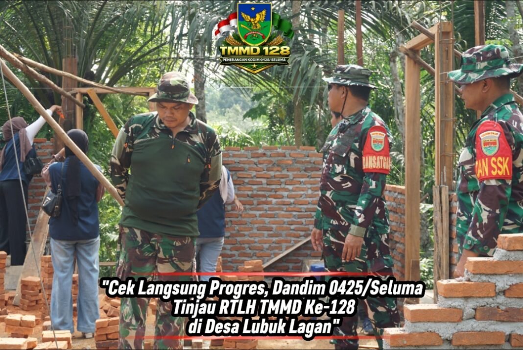 Seluma – Komandan Kodim 0425/Seluma, Letkol Kav Yuliansyah, melakukan peninjauan langsung terhadap proses pembangunan Rumah Tidak Layak Huni (RTLH) di Desa Lubuk Lagan, Kecamatan Talo Kecil, sebagai bagian dari program TMMD Ke-128.