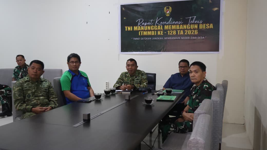 Minahasa Tenggara, – Komandan Kodim 1302/Minahasa, Letkol Inf Bonaventura Ageng F. S, mengikuti video conference (vicon) untuk memaparkan kesiapan pelaksanaan Tentara Manunggal Membangun Desa (TMMD) ke-128 Tahun 2026 kepada Mayjen TNI Mirza Agus. Kegiatan ini berlangsung di Kantor Bupati Kabupaten Minahasa Tenggara, yang terletak di Kelurahan Lowu Utara, Kecamatan Ratahan, pada Jumat, 17 April 2026 pukul 10.10 WITA.