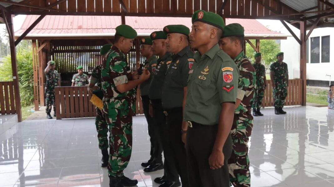 Halmahera Tengah – Sebanyak 14 prajurit dari Kodim 1512/Weda menerima kenaikan pangkat yang ditandai dengan pelaksanaan upacara resmi di Gazebo Makodim pada Rabu, (01/04/2026). Upacara tersebut dipimpin oleh Dandim 1512/Weda, Letkol Inf Fachrozie Fanani, S.H.