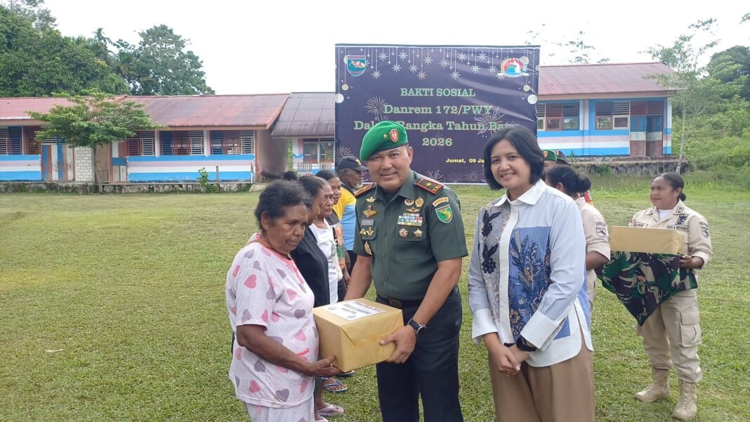 Biak Timur – Pada hari Jumat, 9 Januari 2026, Danrem 172/PWY Brigjen TNI Tagor Rio Pasaribu bersama Ibu Gracia Angelica Setiawan mengadakan kunjungan kerja yang penuh makna. Kegiatan ini berlangsung di Halaman SD Negeri Samares, Kampung Sepse, Distrik Biak Timur, Kabupaten Biak Numfor. Kunjungan ini mencakup bakti sosial dan peninjauan lokasi pembangunan Yon TP 858.