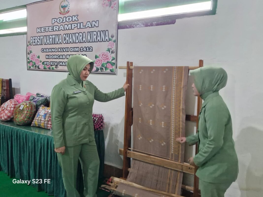 Kolaka – Ketua Persit Kartika Chandra Kirana (KCK) Daerah XIV/Hasanuddin, Ny. Renny Bangun Nawoko, memberikan dukungan penuh untuk pengembangan Usaha Mikro, Kecil, dan Menengah (UMKM) Persit KCK Cabang XLVII Dim 1412/Kolaka. Fokus dukungan ini tertuju pada pengembangan kerajinan kain tenun yang merupakan warisan budaya lokal, dengan motif yang memadukan elemen tradisional dan modern.