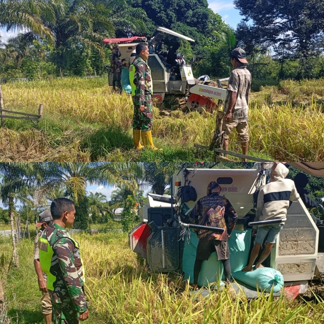 ACEH BARAT – Kehadiran TNI di tengah masyarakat kembali tampak nyata melalui kegiatan pendampingan pertanian. Babinsa Koramil 09/Samatiga, Serda Haswin, turun langsung ke sawah mendampingi para petani Desa Pinem, Kecamatan Samatiga, Kabupaten Aceh Barat, dalam kegiatan panen padi.