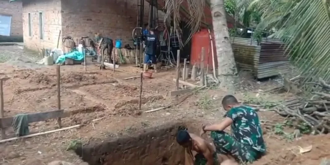 Lahat — Program TNI Manunggal Membangun Desa (TMMD) ke-128 Kodim 0405/Lahat kembali menunjukkan progres signifikan. Memasuki Senin (27/4/2026), personel Satgas mulai melakukan penggalian lubang sanitasi untuk pembangunan sumur bor dan fasilitas Mandi, Cuci, Kakus (MCK) di Desa Lubuk Tampang, Kecamatan Kikim Timur, Kabupaten Lahat.