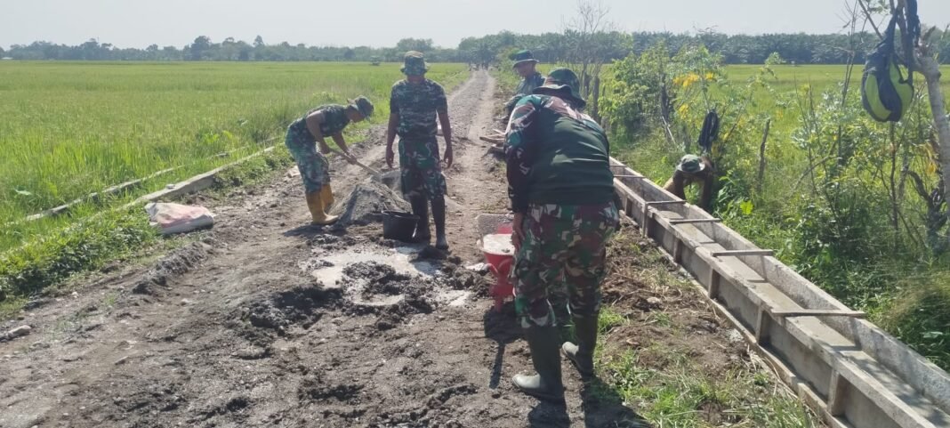 Aceh Barat – Program TNI Manunggal Membangun Desa (TMMD) Reguler ke-127 Kodim 0105/Abar terus menunjukkan progres positif, salah satunya melalui pembangunan talut penahan timbunan jalan di Desa Pasi Aceh.