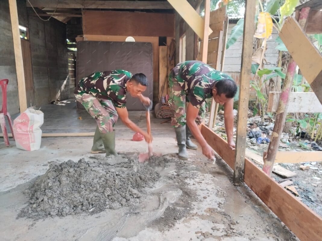 Aceh Barat – Di antara tumpukan batako dan aroma semen basah, tersimpan cerita tentang ketulusan. Satgas TMMD Reguler ke-127 Kodim 0105/Abar terus menggenjot pembangunan RTLH milik Nenek Kisah (66) di Desa Lueng Jawa, Kecamatan Woyla.