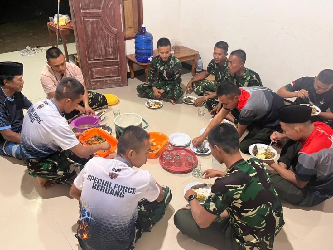 Banyuasin – Pada hari keempat pelaksanaan program TNI Manunggal Membangun Desa (TMMD) Ke-127 Tahun Anggaran 2026, ikatan kebersamaan antara anggota Satgas dari Kodim 0430/Banyuasin dan masyarakat semakin kuat. Keakraban ini tampak saat anggota Satgas berbagi makan malam bersama Aldi, pemilik rumah yang menjadi tempat mereka tinggal, di Desa Wonosari, Kecamatan Pulau Rimau, Kabupaten Banyuasin.