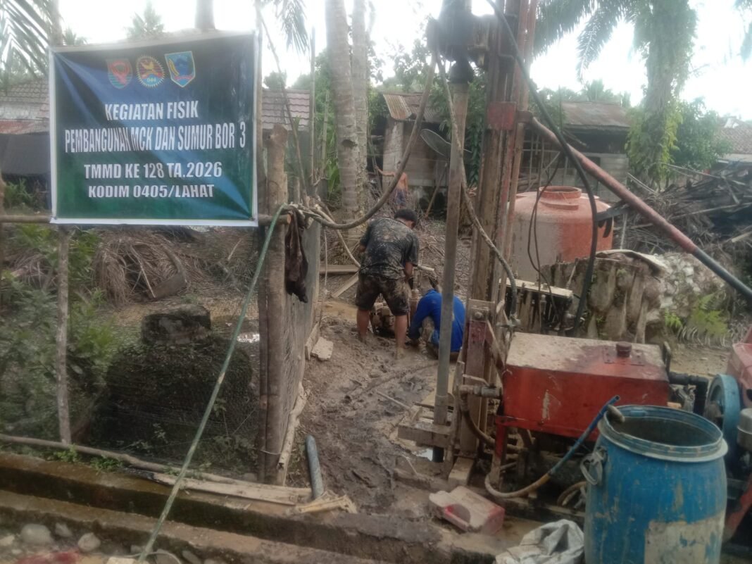 Program Tentara Manunggal Membangun Desa (TMMD) ke-128 yang dilaksanakan oleh Kodim 0405/Lahat menunjukkan komitmen yang luar biasa. Saat ini, pengeboran sumur bor ke-3 di Desa Lubuk Tampang, Kecamatan Kikim Timur telah dimulai dan dikerjakan dengan penuh semangat oleh anggota Satgas yang bekerja sama dengan masyarakat setempat.