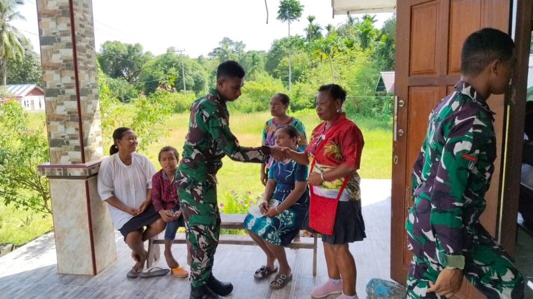 Manokwari, Papua Barat — Pada hari Minggu (26/04/2026), personel Satgas TNI Manunggal Membangun Desa (TMMD) ke-128 Kodim 1801/Manokwari memulai aktivitasnya dengan melaksanakan ibadah bersama masyarakat di Kampung Tanah Rubuh, Distrik Manokwari Utara, Kabupaten Manokwari.