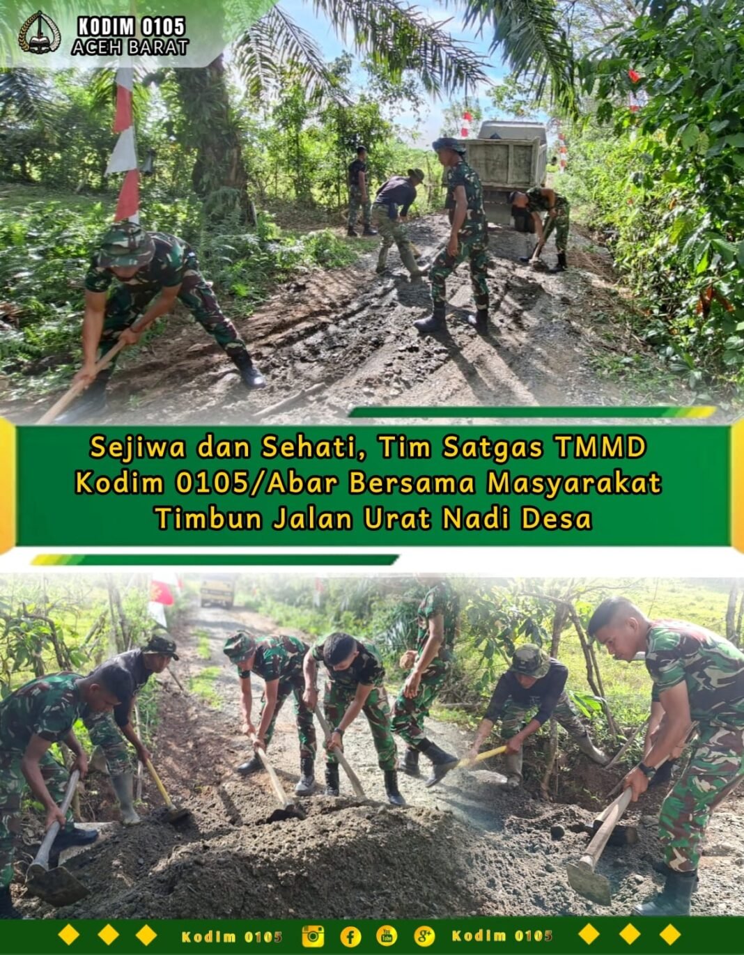 Aceh Barat – Pembangunan jalan dalam program TMMD Reguler ke-127 Kodim 0105/Abar terus menunjukkan progres signifikan. Di Desa Pasi Aceh, Kecamatan Woyla, personel Satgas bersama warga fokus pada penimbunan serta pengerasan bahu jalan.
