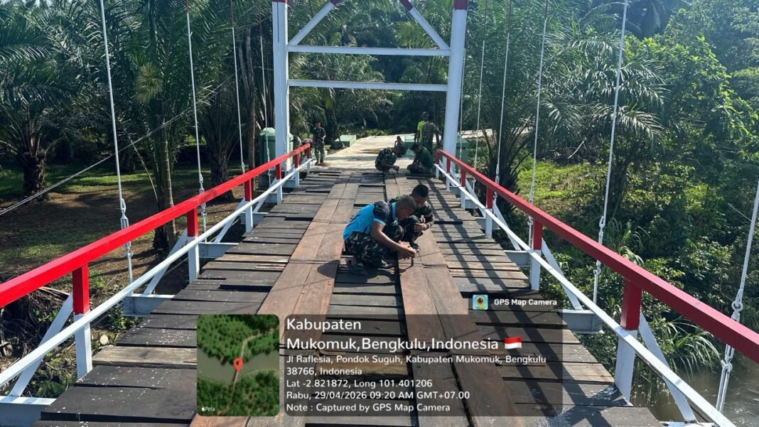 Setelah melalui serangkaian proses, Kodim 0428/Mukomuko berhasil menyelesaikan rehabilitasi Jembatan Gantung Perintis Garuda untuk mendukung infrastruktur wilayah pada Rabu (29/04/2026).