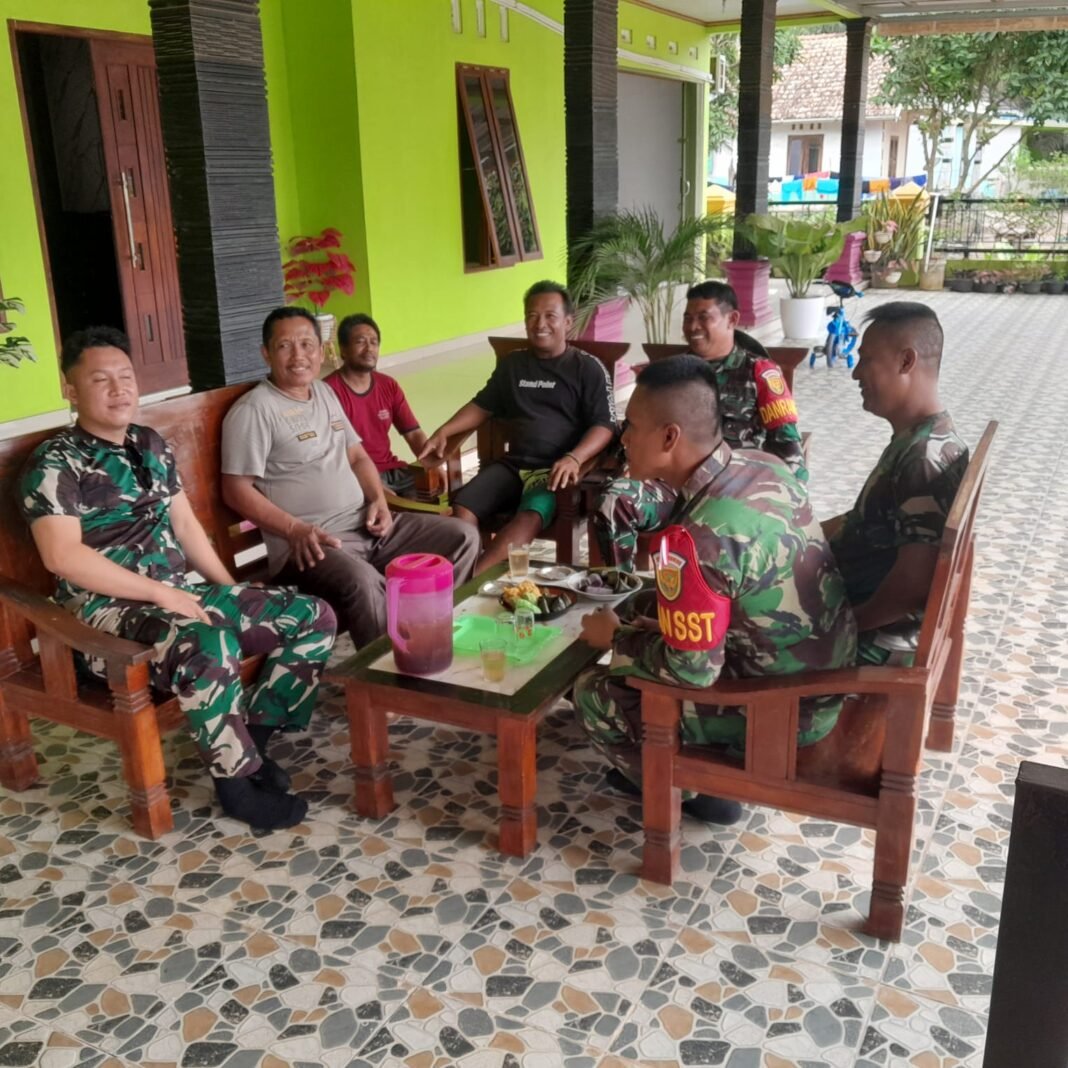 Dalam suasana hangat dan penuh keakraban, anggota Satgas TMMD dan warga terlibat dalam perbincangan santai mengenai berbagai topik, mulai dari keadaan desa, kemajuan kegiatan TMMD, hingga keseharian masyarakat yang tinggal di sana. Nuansa kekeluargaan sangat kental dalam kebersamaan ini.