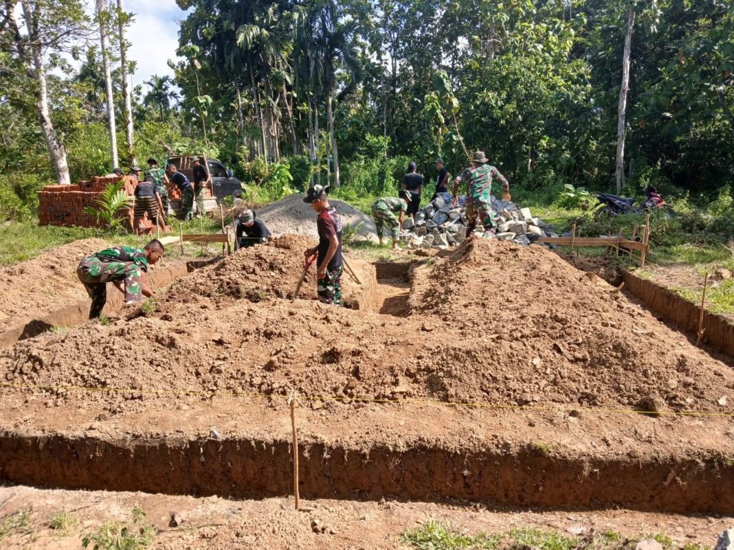 Kegiatan TMMD Ke-128 di Andowia, Pondasi Rumah Dikerjakan dengan Penuh Semangat