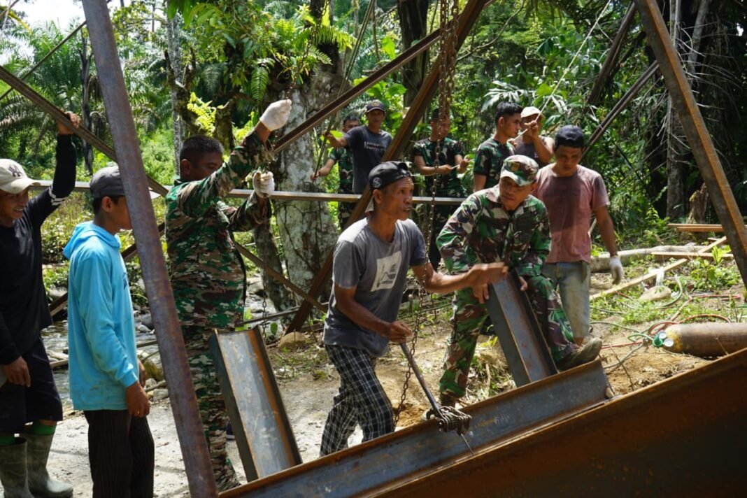 Bengkulu Selatan – Hingga kini, pembangunan Jembatan Gantung Perintis Garuda yang diinisiasi Koramil 408-05/Manna Kodim 0408/BS di Desa Pino Baru, Kecamatan Air Nipis, Kabupaten Bengkulu Selatan terus berlanjut. Pada hari Sabtu (25/4/2026), fokus utama adalah pada perakitan besi untuk pondasi jembatan, yang merupakan elemen penting dalam menjaga kekuatan konstruksi.