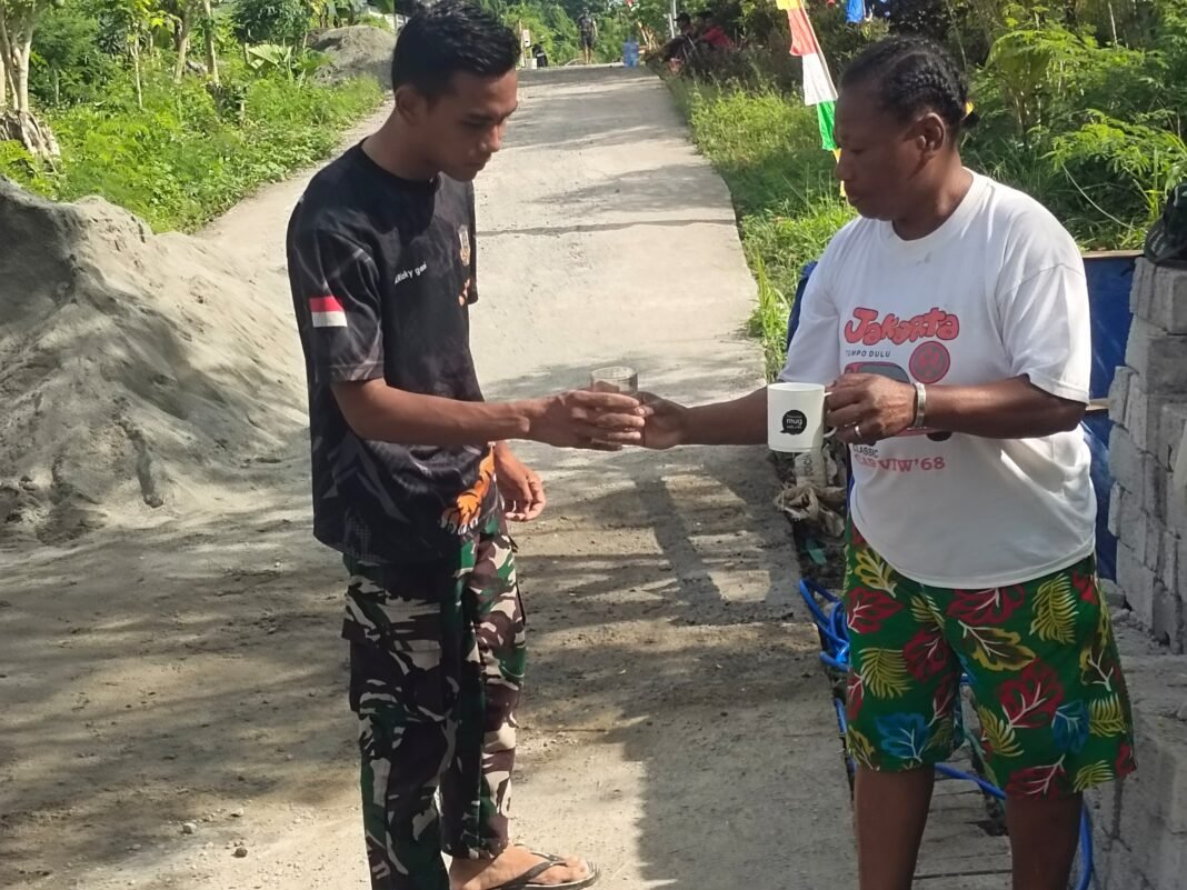 Manokwari Utara – Masyarakat terus menunjukkan dukungan mereka terhadap program TMMD ke-128 yang digelar oleh Kodim 1801/Manokwari. Salah satu bentuk nyata dukungan ini datang dari mama-mama di Kampung Tanah Rubuh yang menyiapkan air minum untuk para anggota Satgas TMMD yang sedang bekerja di proyek pembangunan rumah layak huni.