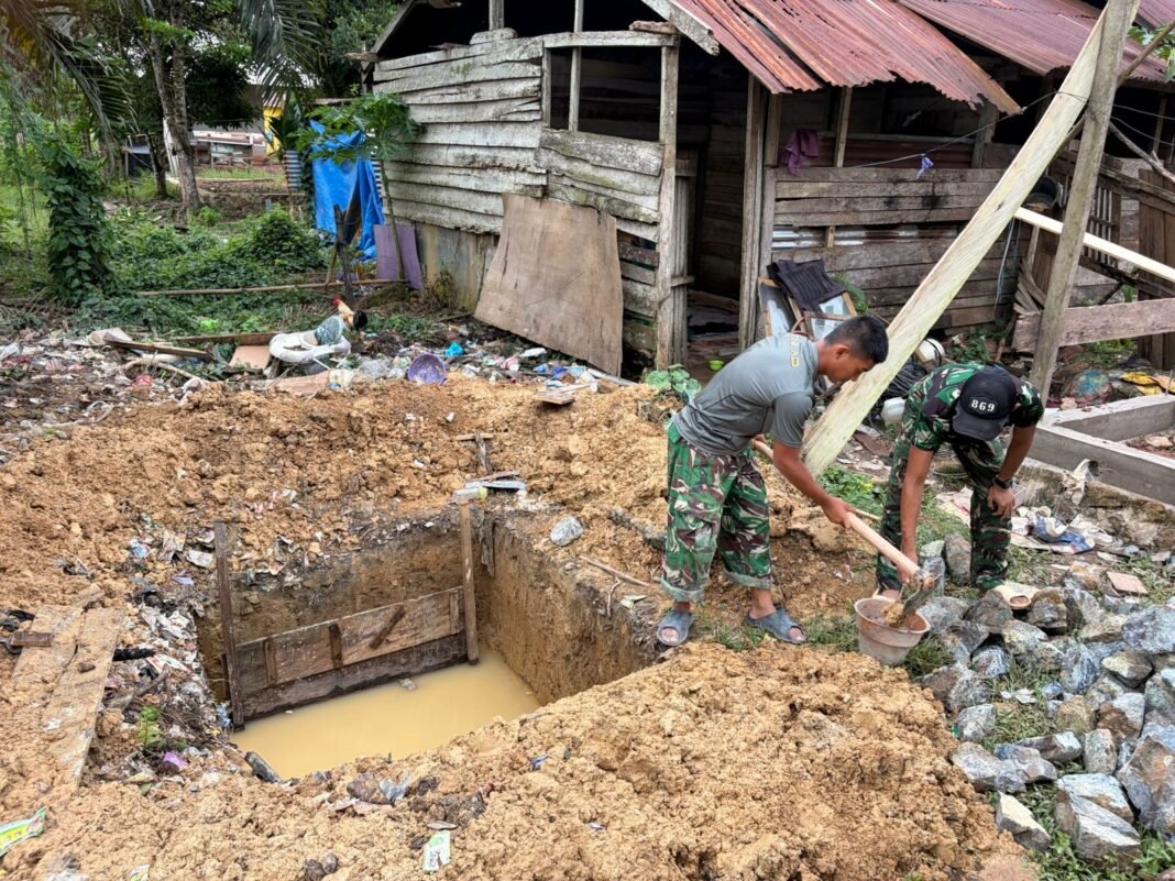 Amolame – Situasi gotong royong kembali hidup di Desa Amolame, Kecamatan Andowia, Kabupaten Konawe Utara. Pada Rabu (29/4/2026), anggota Satgas TMMD ke-128 Kodim 1430/Konawe Utara bekerja sama dengan warga dalam kegiatan penggalian MCK yang ditujukan untuk Bapak Hasruddin.