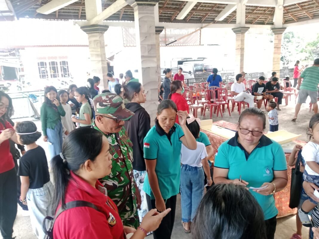 Bangli – Dalam upaya mendukung program kesehatan bagi masyarakat, Babinsa Desa Peninjoan, Serka Made Suarnika, berpartisipasi dalam kegiatan Posyandu Balita yang dilaksanakan di Balai Banjar Pulesari Kangin, Desa Persiapan Pulesari, Kecamatan Tembuku, Kabupaten Bangli, pada Rabu (01/04/2026).