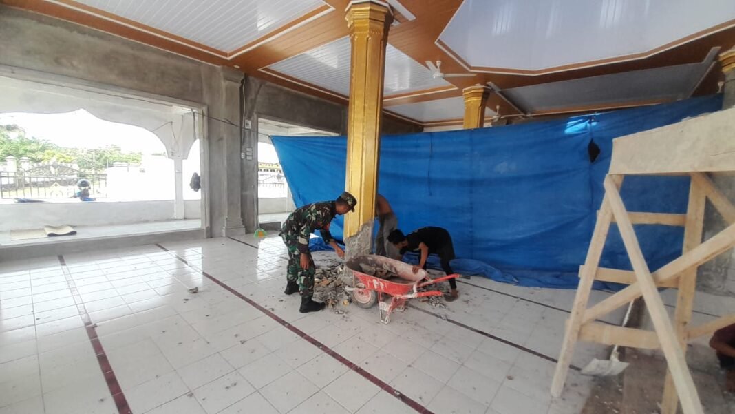 Melihat pentingnya fungsi masjid bagi kehidupan masyarakat, warga bersama Babinsa berinisiatif melakukan perbaikan pada beberapa bagian bangunan serta membersihkan area sekitar agar tempat ibadah tersebut semakin nyaman digunakan.