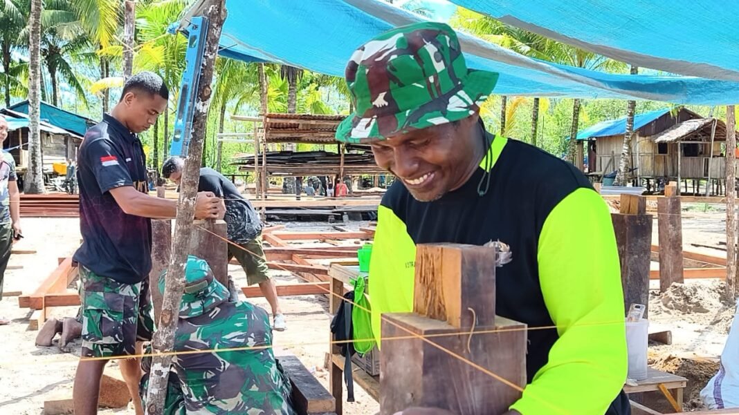 Mimika — Kegiatan TMMD Reguler ke-128 Kodim 1710/Mimika yang berlangsung di Kampung Keakwa pada Minggu (26/4/2026) memperlihatkan semangat kebersamaan yang menonjol. Personel Satgas TMMD dengan penuh kerjasama bersama masyarakat lokal, bahu-membahu untuk membangun rumah sebagai bagian dari sasaran fisik program.