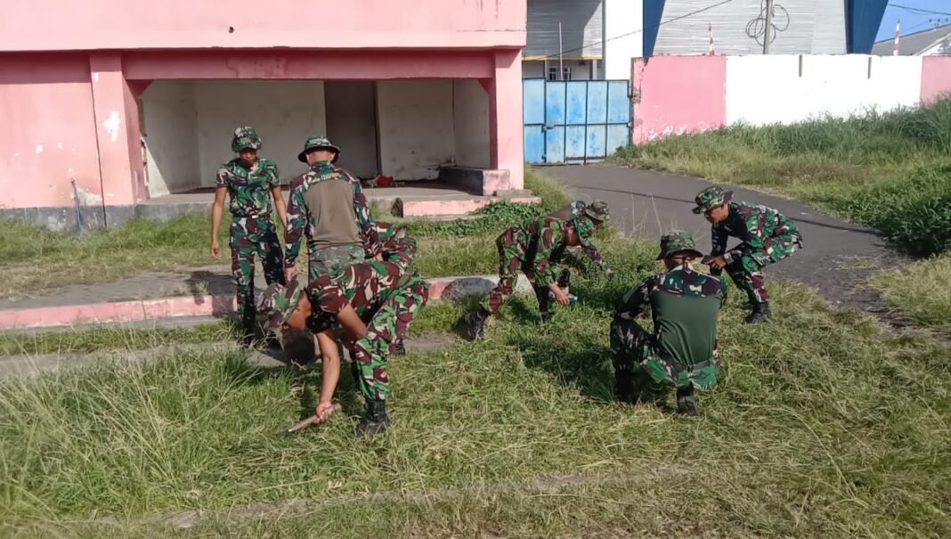 BITUNG – Dalam rangka mendukung Gerakan Indonesia Asri serta menunjukkan kepedulian terhadap kebersihan lingkungan, anggota Kodim 1310/Bitung bersama dengan prajurit dari Yonif TP 916/BS melaksanakan kegiatan kerja bakti untuk membersihkan area Stadion Duasudara, yang terletak di Kelurahan Manembo Nembo Tengah, Kecamatan Matuari, Kota Bitung, pada hari Sabtu, (04/04/2026).
