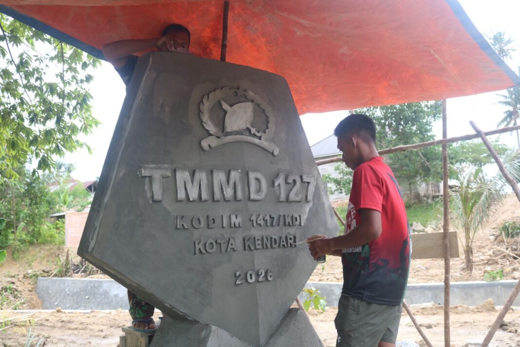 Kendari – Anggota Satgas TNI Manunggal Membangun Desa (TMMD) ke-127 dari Kodim 1417/Kendari telah memulai proses pembangunan tugu prasasti yang akan menandai pelaksanaan program TMMD di Kota Kendari pada Selasa (10/3). Tugu ini dibangun di lokasi strategis yang berdekatan dengan sasaran fisik dari program ini.