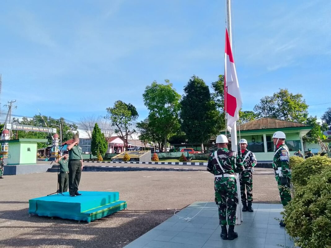 SoE – Kodim 1621/Timor Tengah Selatan (TTS) mengadakan Upacara Bendera rutin pada hari Senin, (09/02/2026), yang berlangsung di Lapangan Upacara Makodim 1621/TTS. Upacara ini dihadiri oleh sekitar 65 personel dan dilangsungkan dengan tertib serta khidmat, sebagai wujud pembinaan disiplin dan penanaman nilai-nilai kejuangan dalam diri prajurit TNI.