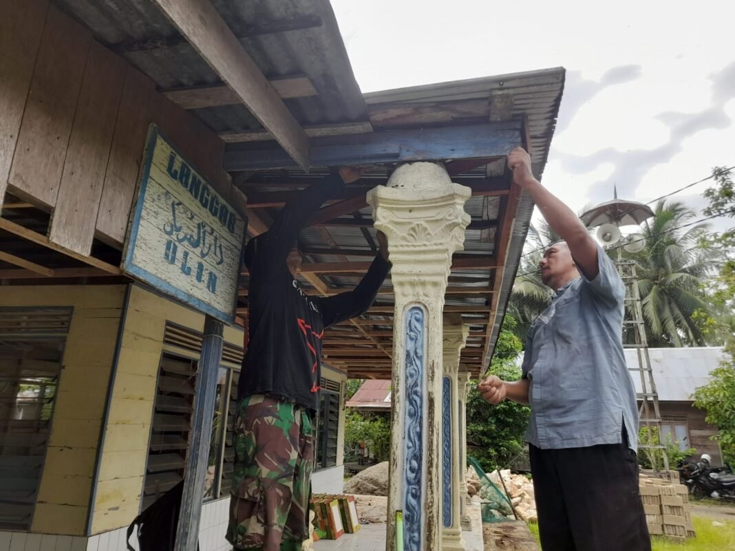 “Alhamdulillah, langgar yang setiap hari kami pakai untuk salat berjamaah, mengaji, dan kegiatan keagamaan lainnya ini sudah banyak yang rusak. Kalau hujan lebat, jamaah kehujanan karena atapnya bocor. Sekarang dibongkar dan direhab total oleh bapak-bapak TNI bersama kami. Mudah-mudahan nanti jadi lebih nyaman, bersih, dan lengkap fasilitasnya. Jadi ibadah makin khusyuk, tidak waswas lagi kalau hujan,” ungkap Zainurahmi dengan wajah berbinar.