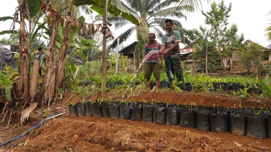 Kotawaringin Timur – Program Tentara Manunggal Membangun Desa (TMMD) ke-127 yang digelar oleh Kodim 1015/Sampit tidak hanya terfokus pada pembangunan infrastruktur, tetapi juga berupaya memperkuat interaksi sosial dengan masyarakat setempat. Hal ini terlihat jelas saat anggota Satgas TMMD melaksanakan komunikasi sosial (komsos) dengan memberikan bantuan kepada petani sawit di Desa Tribuana, Kecamatan Telaga Antang, Kabupaten Kotawaringin Timur, pada Kamis (12/02/2026).