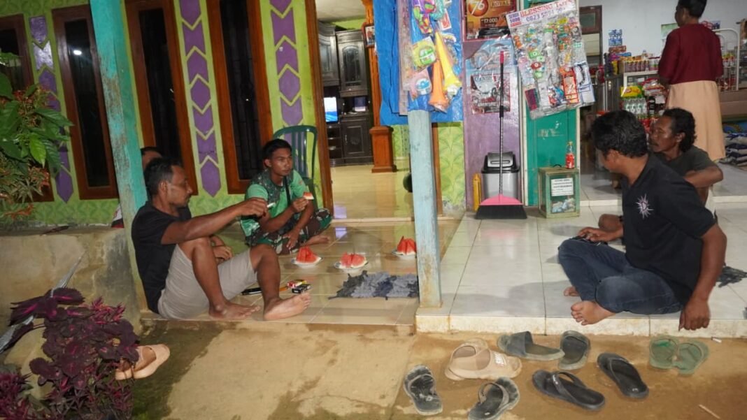 Kotawaringin Timur – Dalam rangka mempererat hubungan dengan masyarakat, anggota Satuan Tugas (Satgas) TMMD Reguler ke-127 Kodim 1015/Sampit meluangkan waktu untuk berkomunikasi sosial (komsos) dengan warga Desa Tri Buana, Kecamatan Telaga Antang. Kegiatan ini dilaksanakan pada Senin malam (23/02/2026), di tengah padatnya aktivitas pembangunan fisik yang sedang mereka jalani.
