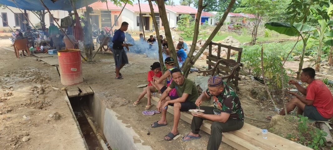 Kendari – Keharmonisan antara Satgas TMMD ke-127 Kodim 1417/Kendari dan warga Kelurahan Anggoeya, Kecamatan Poasia, terlihat jelas dalam acara makan siang bersama yang berlangsung di lokasi proyek, pada hari Kamis (12/2). Acara ini menjadi kesempatan berharga untuk memperkuat ikatan kekeluargaan di tengah aktivitas pembangunan yang berlangsung.