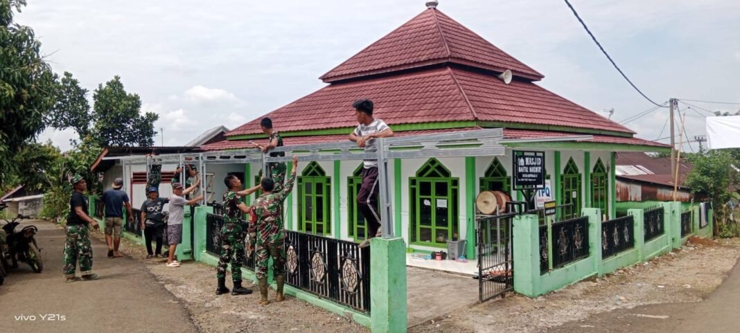 Memperindah Tempat Ibadah: TMMD 126 Pasang Kanopi Masjid di Batu Raja R