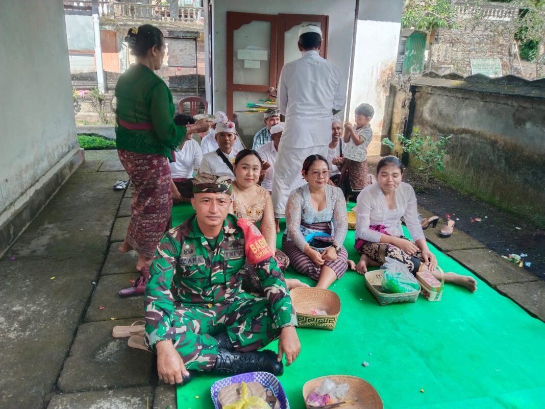Bangli – Dalam upaya menjaga stabilitas keamanan serta memperkuat hubungan dengan masyarakat, Babinsa Desa Tembuku dari Koramil 1626-03/Tembuku, Serda Sang Komang Teg Redana, melakukan pemantauan terhadap kegiatan keagamaan dengan menghadiri upacara Piodalan Purnama Kedasa yang berlangsung di Padmasana Kantor Desa Tembuku, Kecamatan Tembuku, Kabupaten Bangli, pada Kamis (2/4/2026).