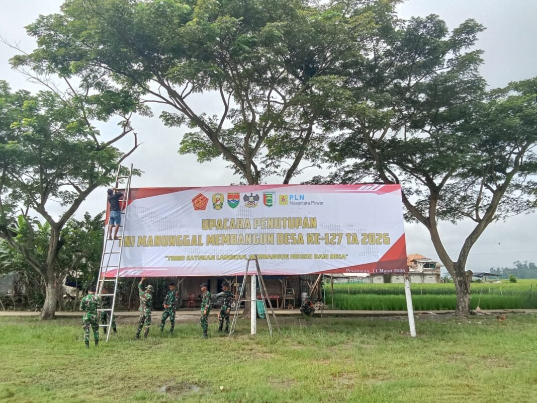 Pesawaran – Dalam rangka menyambut penutupan kegiatan TNI Manunggal Membangun Desa (TMMD) ke-127, Kodim 0421/Lampung Selatan mulai mempersiapkan segala sesuatunya di Desa Kubu Batu, Kecamatan Way Khilau, Kabupaten Pesawaran. Salah satu langkah yang diambil adalah dengan melakukan pemasangan banner di sejumlah titik strategis yang ada di area kegiatan, sebagai bagian dari persiapan acara penutupan yang akan segera digelar.