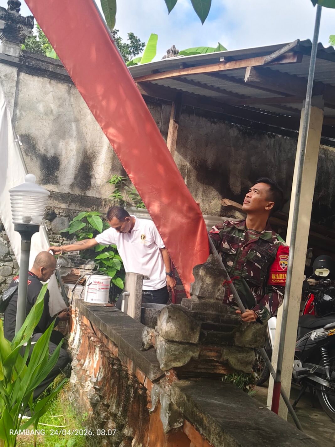Pada Sabtu (25/04/26), di lokasi Kantor Kelurahan terlihat kegiatan pemasangan umbul-umbul oleh Babinsa Semarapura Kauh bersama aparat kelurahan, yang bertujuan untuk menghias ruangan.