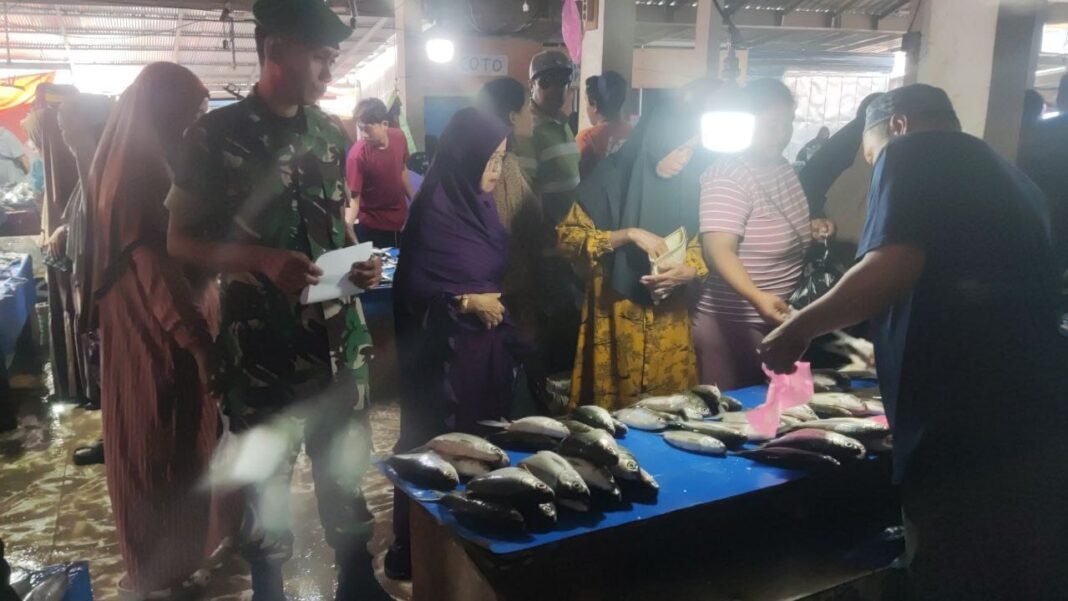 SIDRAP – Menyambut datangnya hari raya Idul Fitri, Sertu Raswadi, yang merupakan Babinsa dari Koramil 01/Panca Lautang, melaksanakan pemantauan terhadap ketersediaan dan harga bahan pokok di Pasar Sentral Bilokka, yang terletak di Kecamatan Panca Lautang, Kabupaten Sidrap pada Rabu (18/03/2026).