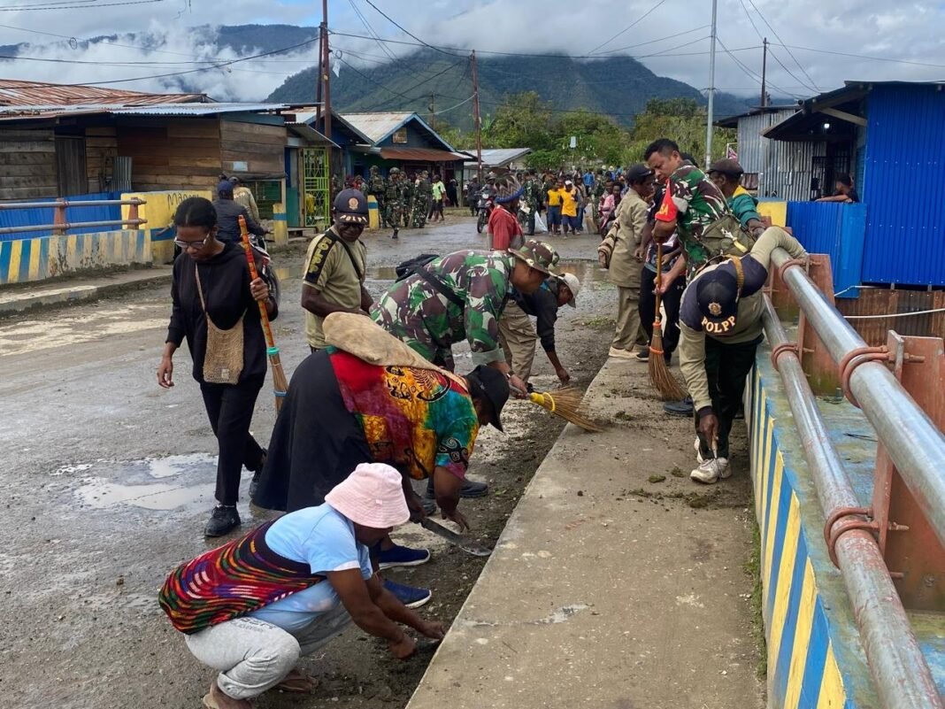 Suasana penuh kebersamaan yang tercipta selama kegiatan Jumat Bersih ini mencerminkan semangat gotong royong yang tetap hidup di tengah masyarakat Dogiyai — sebuah wujud nyata kemanunggalan TNI dengan rakyat dalam menjaga kebersihan dan kelestarian lingkungan.