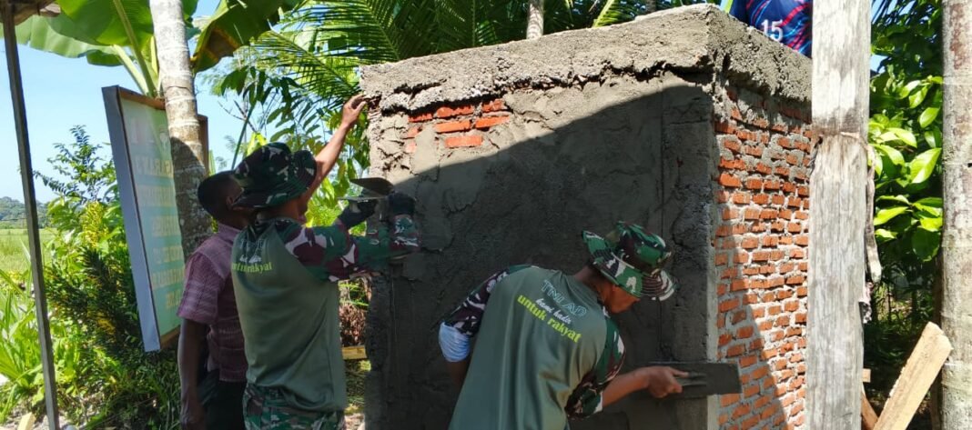 NAGAN RAYA — Kepedulian terhadap kesehatan lingkungan terus ditunjukkan melalui pembangunan fasilitas mandi cuci kakus (MCK) oleh Satgas TNI Manunggal Membangun Desa (TMMD) Ke-127 bersama Kodim 0116/Nagan Raya, Minggu (22/2/2026). Pembangunan sarana sanitasi tersebut dilakukan sebagai upaya meningkatkan kualitas kesehatan serta kesejahteraan masyarakat.