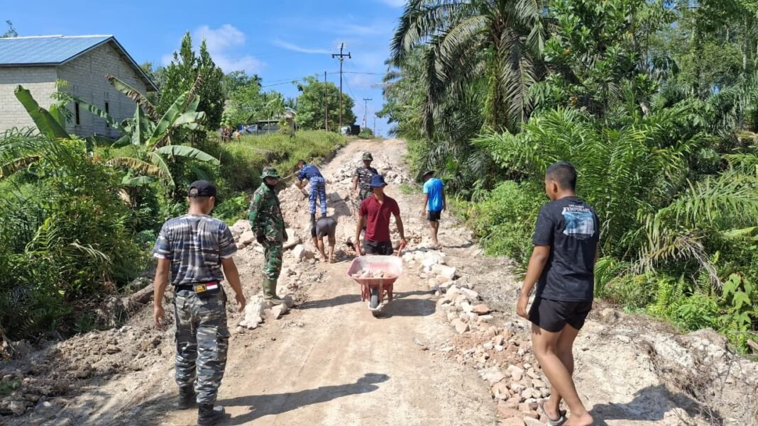 Pangkalan Banteng – Dalam menghadapi cuaca yang panas, tim Satgas TMMD Ke-128 Kodim 1014/Pbn terus melaksanakan perataan jalan di Desa Sungai Hijau, Kecamatan Pangkalan Banteng pada Rabu (29/04/2026).